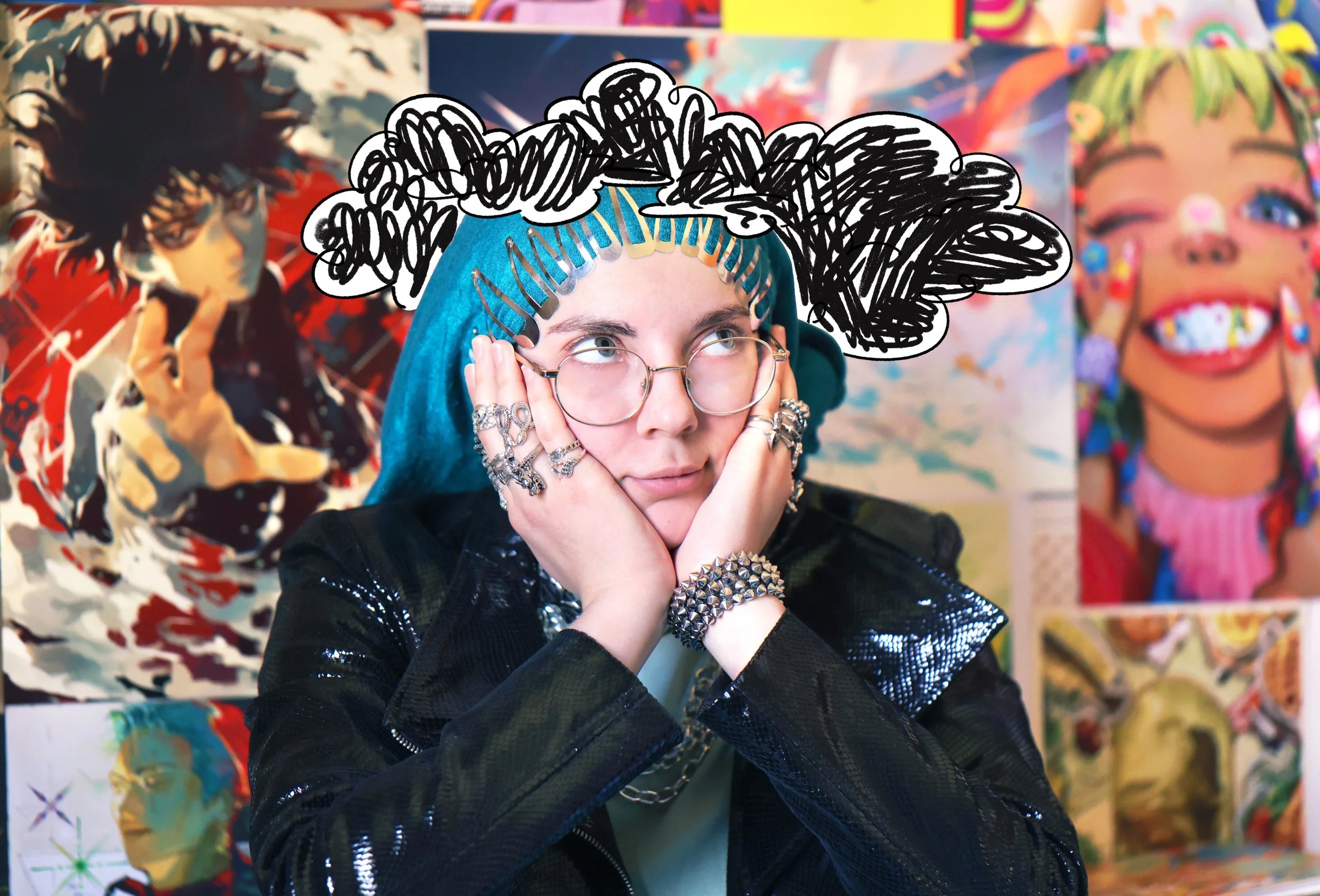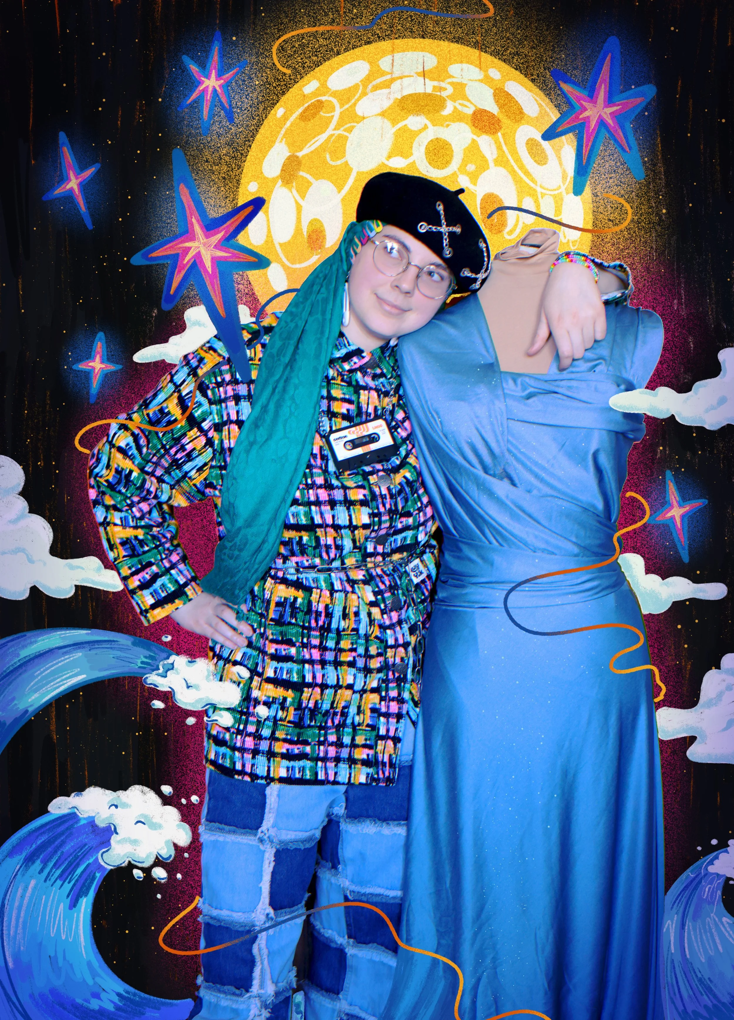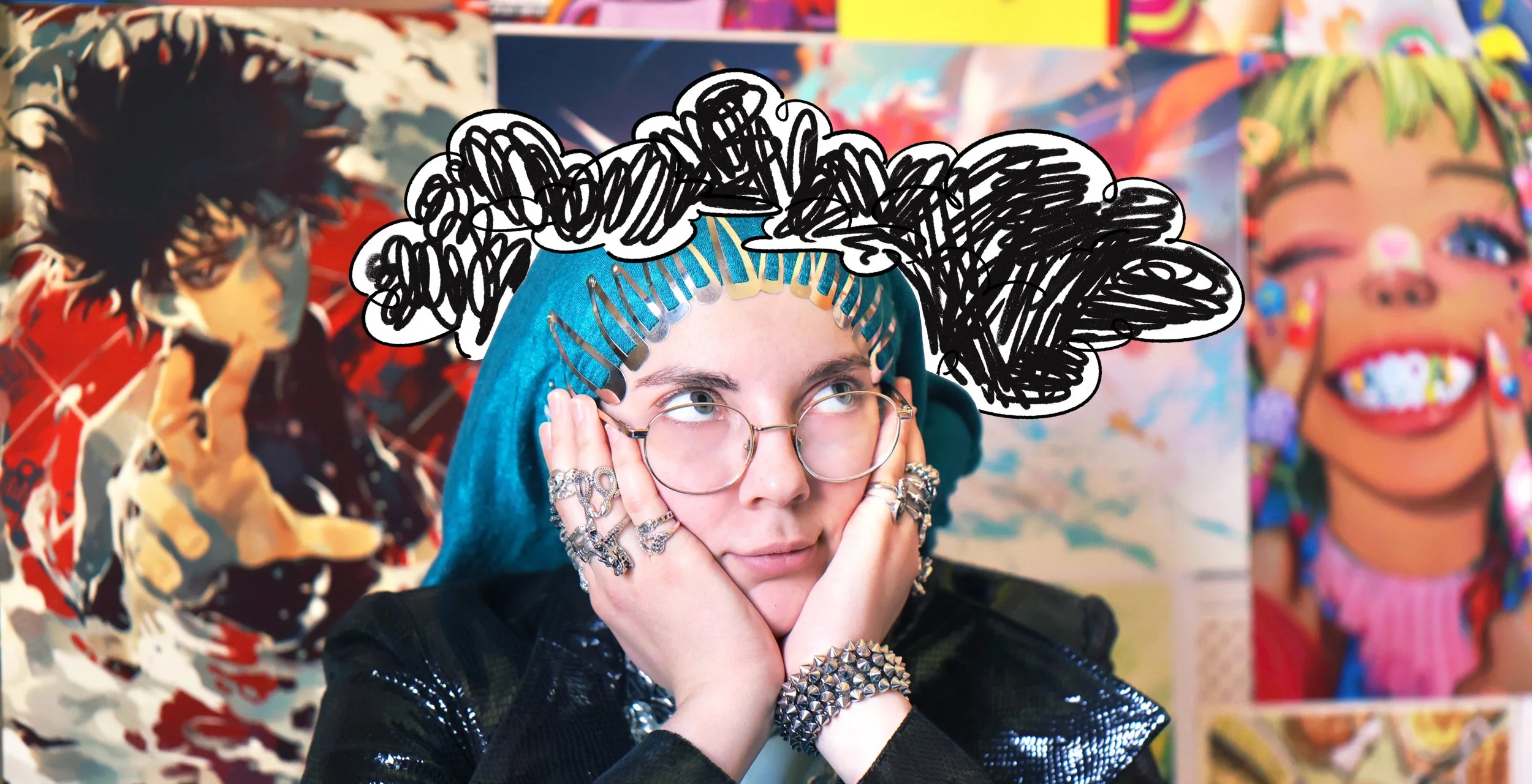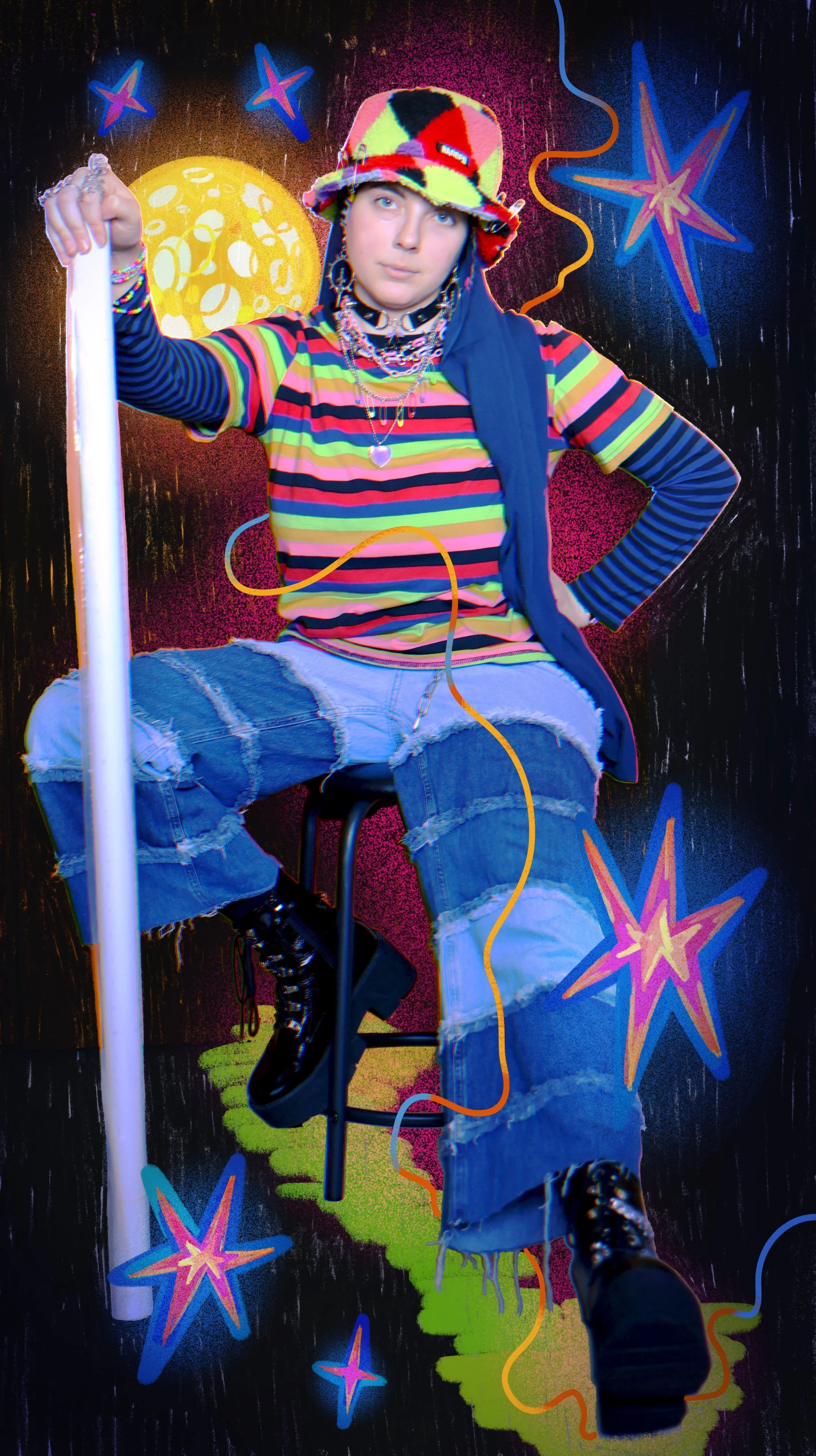 Inspired by an animated music video I love, “Yoku” by Eve, the artists I grew up loving and have befriended along the way, and the ways people combine art with fashion, I wanted to create a photoshoot that creatively showed my artistic influences and upbringing with this journey of being a fashion student and the highs and lows that come with it. On the right is the moodboard, and below are some composition sketches.